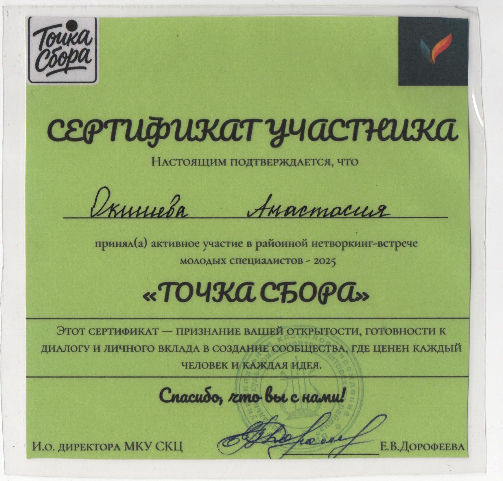 Сертификат Районный нетворкинг-встречи молодых специалистов